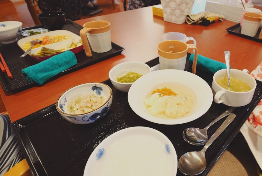食事を上手く摂れない方には、ご家族と相談しながら、食べやすい形態や、ご本人がお好きなメニューに変更するといった柔軟な対応が行われています。