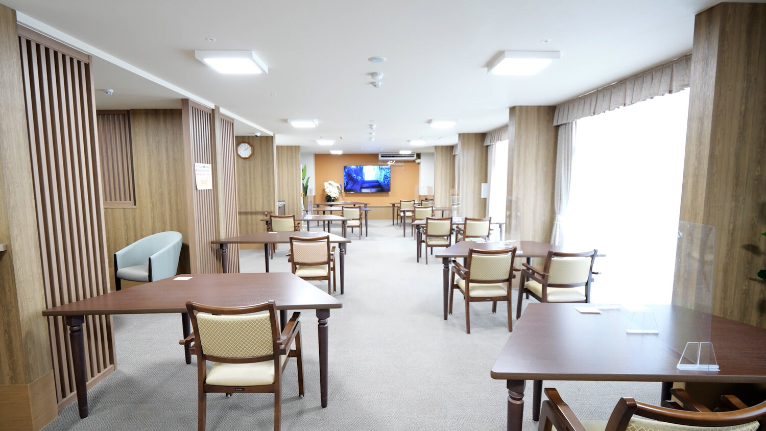 - 食堂(3)調理施設(3)、トイレ(4)、機械浴(2)、個室浴(7)、エレベーター(1)、談話コーナー(3)等