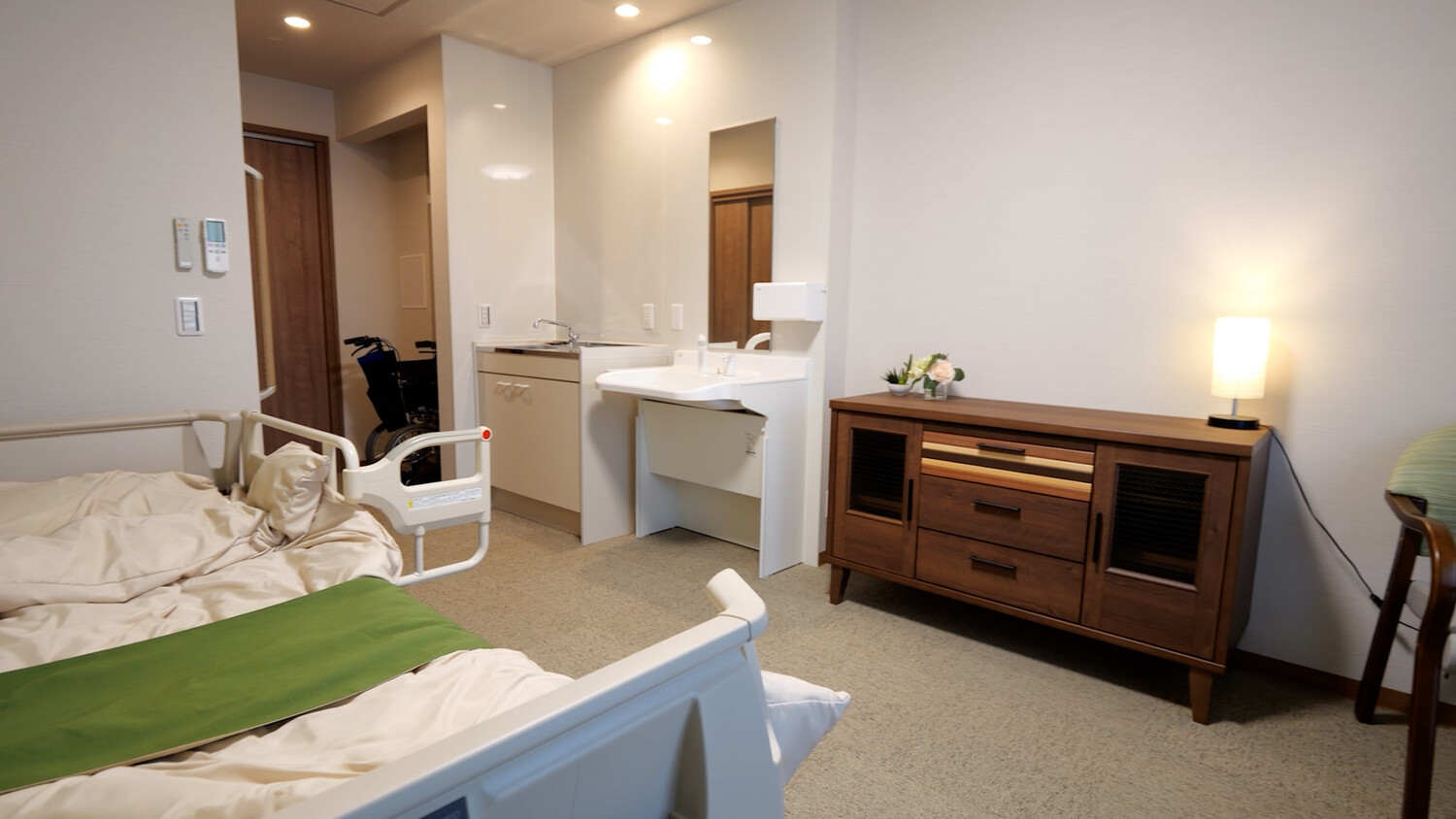 居室はプライバシーを重視した広々とした個室で、自分らしい生活空間を保てる。